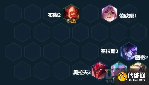3-2拉6,先搜出布隆+蕾欧娜+奥拉夫+永恩+图奇的2射手2狂刃2护卫2幻镜的基础阵容,补1张格斗单位开2格斗加强前排质量,运气好刷到潘森可以直接开4狂刃。后续永恩来的比较多就和其它2费赌狗阵容节奏一样在六级卡利息搜3星永恩。布隆、老鼠来的多也可以一起追3,其它不在六级追拖节奏,永恩到3后就开始攒钱准备上七。