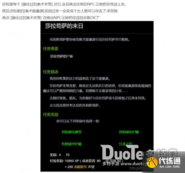 魔兽世界怀旧服wlk沙拉苟萨的末日任务攻略 wlk沙拉苟萨的末日任务怎么做
