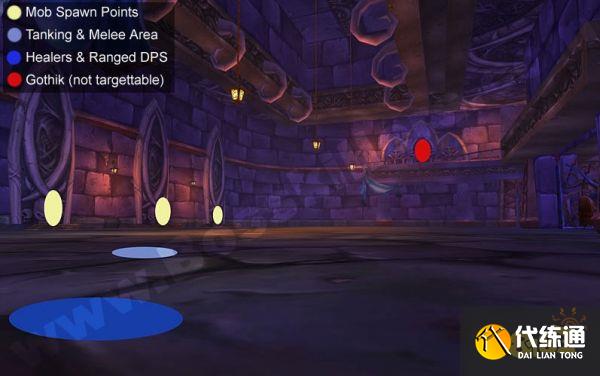 坦克站在中央,以确保最快速度嘲讽戈提克,而输出职业则保证在15秒内尽可能多地输出戈提克。