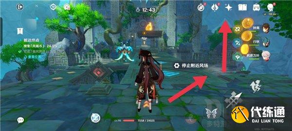 3.清理怪物后,记得回头拿风循币!如箭头所示依次将风场朝上,打开机关,解锁第五处风场。