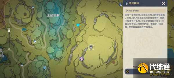 原神护世森传送点在无郁稠林右侧,千万别傻呵呵的跑到山顶上去找,因为根本就不在山顶,跑到地图的位置,然后进去一直走,即可看到护世森传送锚点。