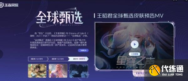 自‘双生”计划后,《王者荣辉》与(Arena of Valor)(简称:AoV)开启了一项新的皮肤联动——'全球甄选”计划。