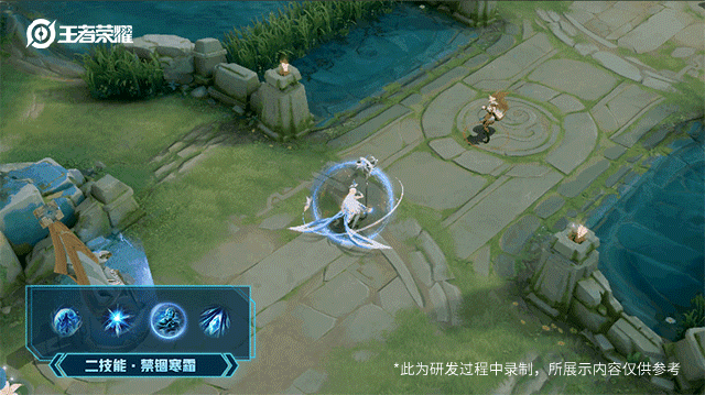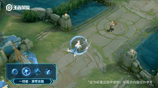 基于全新的皮肤故事,我们选择了她最高光的切片,用王者荣耀产品展示动画的一致风格进行展现——