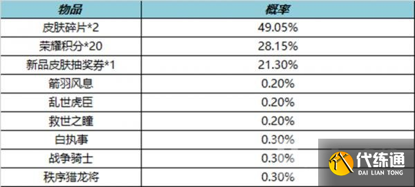 礼盒内含荣耀积分*10,附赠奖励概率公示如下: