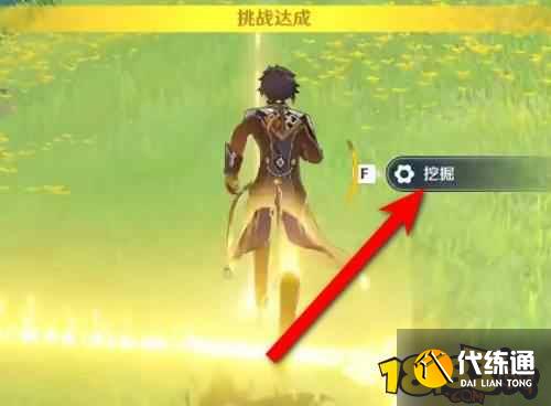 2、到达指定位置后,靠近发光点,点击“挖掘”。