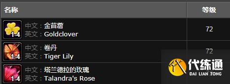 名称:冰冷的草药(金苜蓿/卷丹/塔兰德拉的玫瑰)