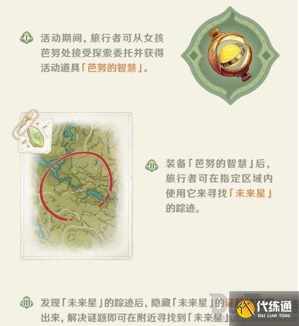 随着委托内容的更新,旅行者需探索不同区域,并使用活动道具找到全部「未来星」,即可解锁多种奖励。