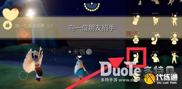 完成方法:面对一位玩家做一个招手的动作就好了