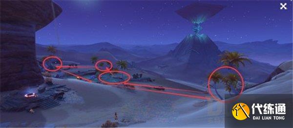 5.到山边营地处有4棵树,采集完回到最开始的点在路上道具冷却就已经好了,可以直接开采集,往复循环。
