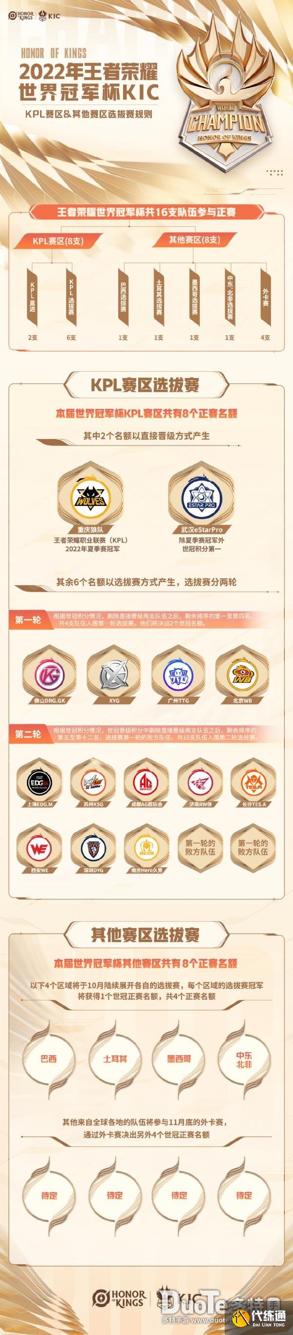 来自全球的其他各地战队将在11月底的外卡赛决出剩下的4个正赛名额。