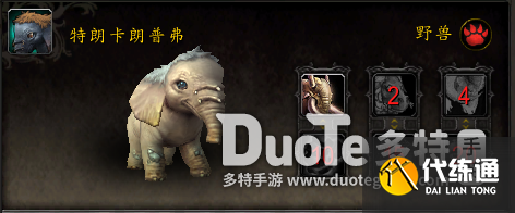 栗子的宠物描述文字里提到的特朗卡朗普弗是一只可爱的猛犸象宝宝,可以在碧蓝林海(/way 23.80 46.16) 、欧恩哈拉平原野外找到。