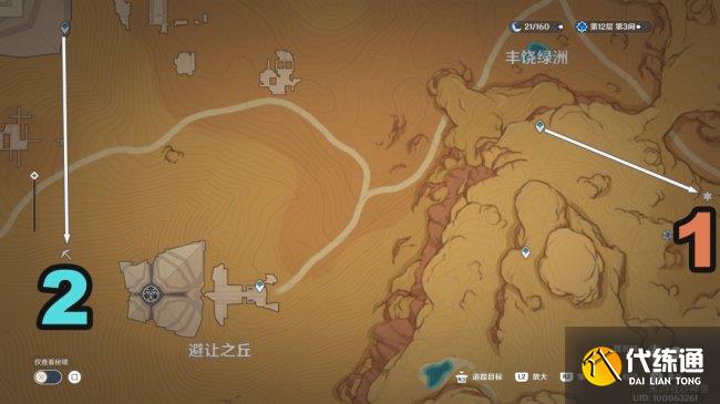 须弥沙漠地灵龛位置介绍:1号地灵龛在丰饶绿洲的右下方,2号地灵龛在避让之丘的左上方(地下) 从赤王陵右下方的锚点出发 往后走 即可抵达