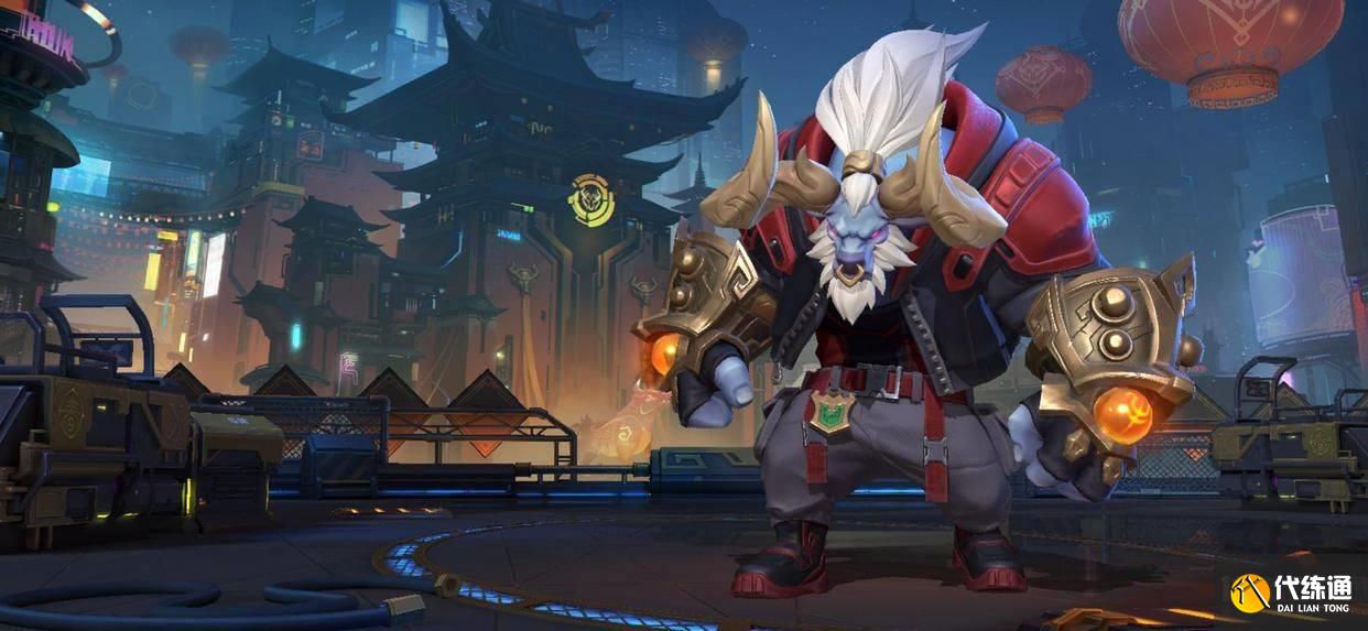 然后是牛头。牛头作为既能奶又能“顶”的辅助,可以说是万金油,在对方想要突进时,及时把他顶走,可以给C位更多输出环境。当想留人时,也可以通过开大招闪现顶回C位的方式,帮助队友集火击杀对方。