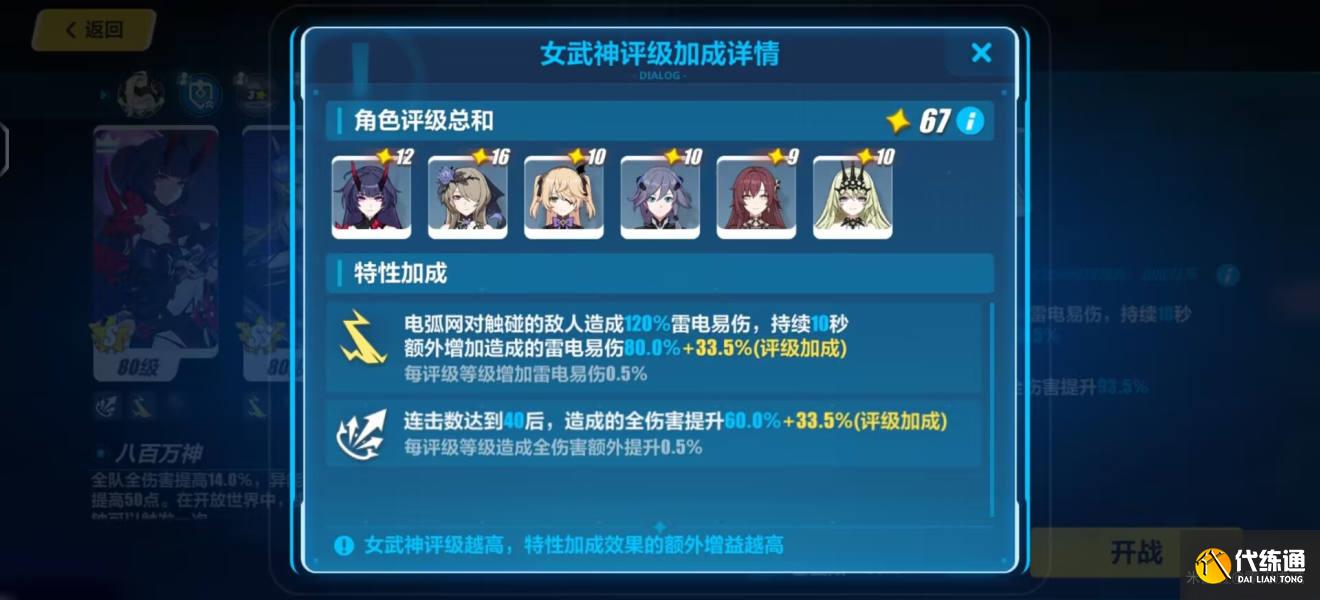 ②派遣适合本期主题的女武神出战与支援,获取女武神特性加成。女武神特性会使女武神在满足战斗条件时给予相应伤害加成,一般加成特性为全伤害。