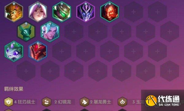 组成4狂刃2幻境2屠龙3玉龙2格斗2护卫完美羁绊。