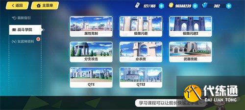 2、主页中右下角的手机中第二页的资料室中,在第三栏的女武神资料里,女武神白练、女武神绯红以及女武神战车中都存在技能教学,点击训练关卡,每一个女武神的技能教学分为两项,共六个关卡,一起加起来共可获得15*6=90水晶。