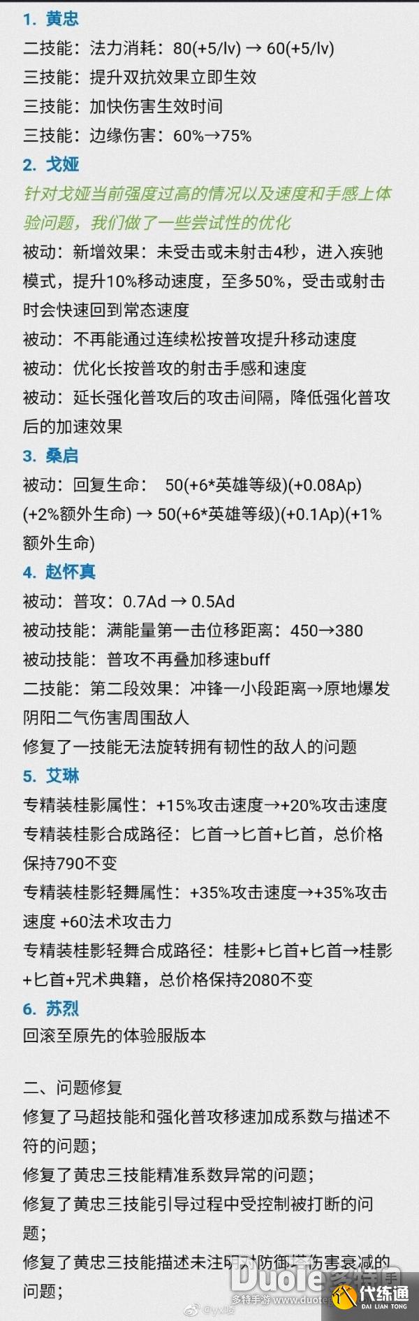体验服的英雄调整公告将直接对比正式服配置进行描述,但并非所有调整都将上线正式服