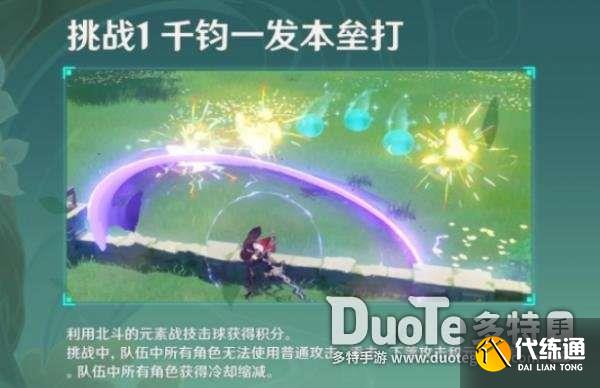 1、利用北斗的元素战技击球获得积分。在游戏的一定时间后,击球难度提升,击球分数也翻倍。