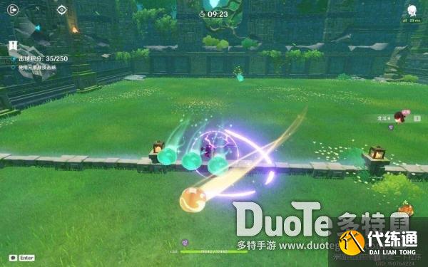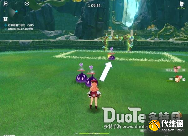 活动场地共有东南西北四个方向球门,一个小雷史莱姆的积分为1分,一个大雷史莱姆的积分为5分。单人下达到35积分即可完成挑战。