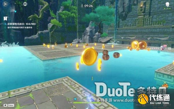 使用神里绫华的天赋技能代替冲刺在水面移动以获取金币。小心脏脏弹,被击中会遮挡视野。没体力了可以通过获取场上的光点来恢复。