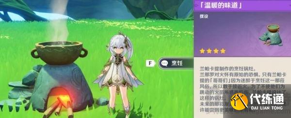 2、在上图位置找到兰帕卡提对话,选择选项中的“特别烹饪修行?”并完成相关而的剧情对话,就可以获得一个摆设“温暖的味道”;