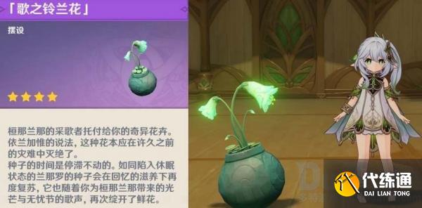 3、兰加惟的礼物需要先完成森林树的前置任务,与兰加惟对话并选择“无忧节的歌...”完成对话剧情之后可以获得「歌之铃兰花」,这是一个室内的摆件,放置效果如下图所示,非常好看。