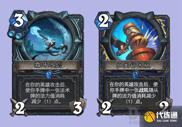 而霜牙之剑就更像是配合组合技卡组的武器,可以横向对比一下萨满的拍卖行木槌,除了2攻可能不太好补怪之外都还算可以,强度还是要取决于冰DK的法术以及构筑可能性如何了。