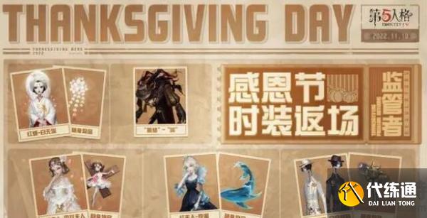 万圣舞会结束之后,即将迎来感恩节活动,将有多件皮肤返场。