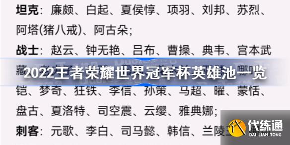 2022王者荣耀世界冠军杯英雄池一览 王者荣耀世界冠军杯全球服英雄池