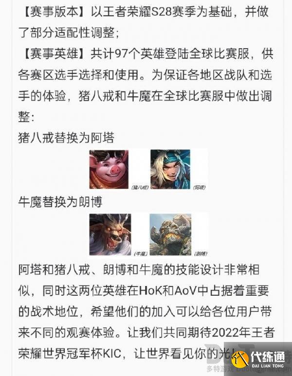 世冠全球比赛服的游戏版本是以《王者荣耀》S28赛季为基础的。简单来说就是:世冠采用的是《王者荣耀》S28赛季的游戏版本,不过一些英雄被“禁用”,而猪八戒以及牛魔这两个英雄的模型变了。