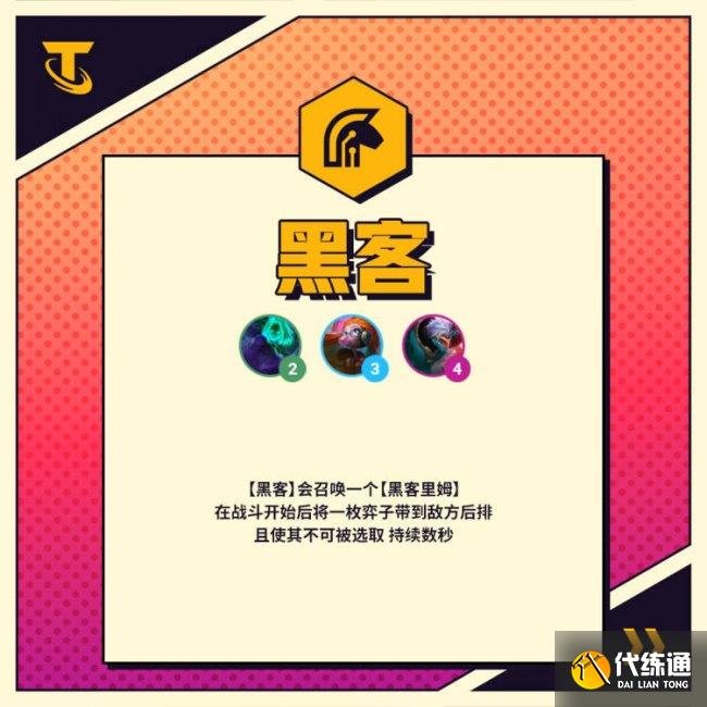 S8赛季羁绊介绍合集:[黑客]会召唤一个[黑客里姆],在战斗开始后将一枚弈子带到敌方后排且使其不可被选取,持续2秒。[黑客]获得额外全能吸血。