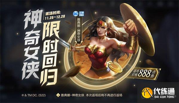 雅典娜-神奇女侠皮肤限时返场,本次返场将是该皮肤在游戏内的最后一次售卖。本次售卖结束后,该皮肤将不会再产出。售卖结束后,商城也将不再展示该皮肤;已购买该皮肤的玩家仍可在自己的皮肤管理界面看到该皮肤和正常使用。