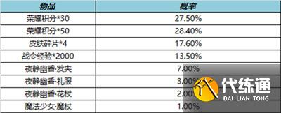 皮肤碎片&积分自选礼盒:打开礼包可任意选择以下奖励之一:荣耀积分*10或皮肤碎片*1