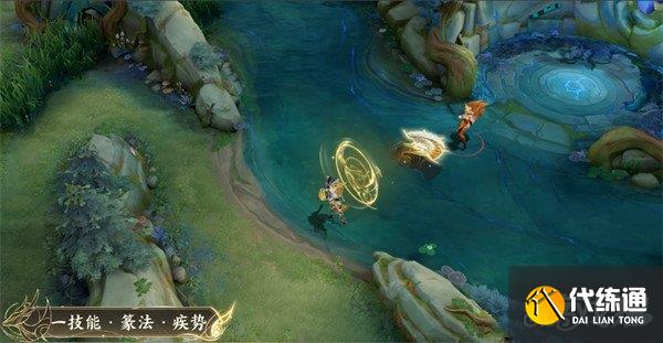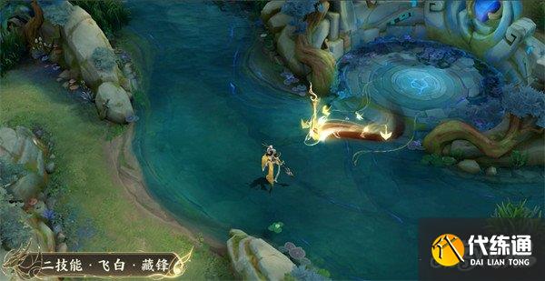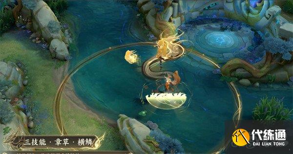 三技能婉儿起飞,拖出能量金线特效,代表万物生灵的金色万象图形特效环绕其身。所到之处,生机盎然!