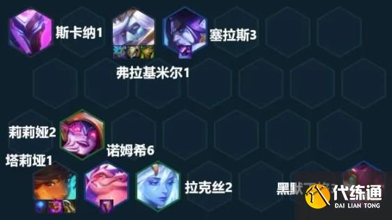 阵容前提:前期胡岩雀(有3星界龙更好)连败过渡+装备合适(蓝buff、法爆必备),有相关战力海克斯最好。