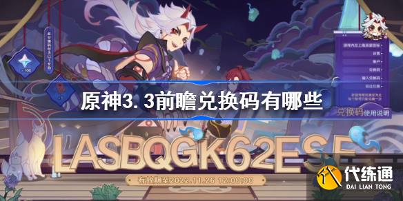原神即将迎来3.3版本的更新,今天晚上8点正式开启3.3前瞻直播,这次播出的前瞻直播节目上官方同样分享了一批兑换码,下面小编为大家带来了原神3.3前瞻兑换码分享,感兴趣的小伙伴一起了解一下吧。