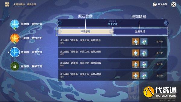 「标准乐谱」模式下,完成挑战获得原石奖励;(这个模式没有难度,不作赘述)