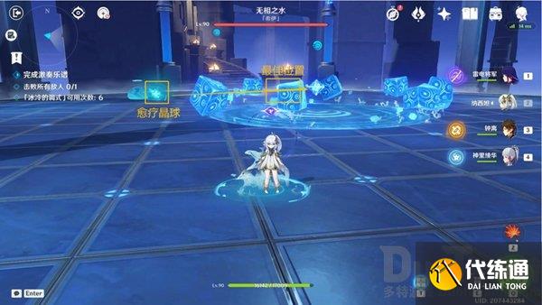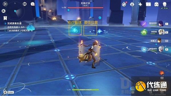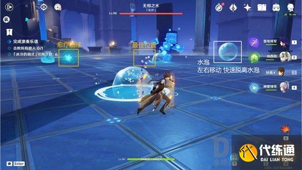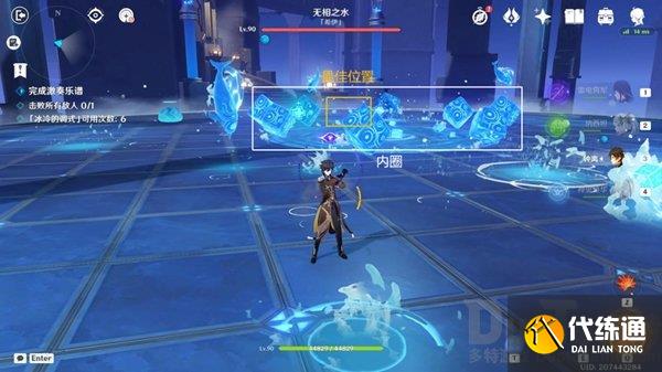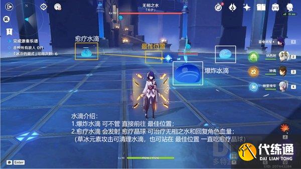 技能躲避:开始挑战,直接前往最佳位置输出即可(触碰愈疗晶球即可);
