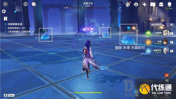配队:雷冰草火C都可(优先草冰元素角色破水盾、草神即可、可不带奶和护盾角色)