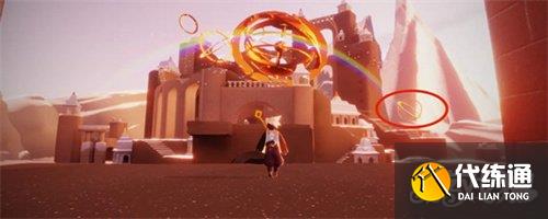 来到赛道前小广场,远远地就能看到彩虹。进入经纬仪地图就能看到彩虹,在霞光城的门口就可以看到彩虹,在彩虹右下角有蜡烛。