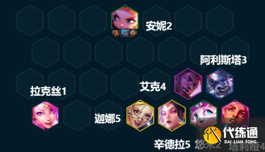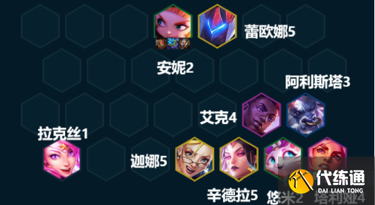 六人口我方上猫并补2爱心使者束缚,此束缚效果与战斗学院相似,爱心使者在施展技能时整个队伍可增加法强且此效果可无限制叠加。此阶段可如果安妮来的多可以追3星安妮,但要保持吃50块利息的节奏,不追3星安妮的话不要主动D,留50块钱升7人口。