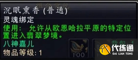 1、沉眠熏香可用于/way67.02,43.72,用完后可进入翡翠梦境中,熏香buff“梦境窥探”可持续20秒。