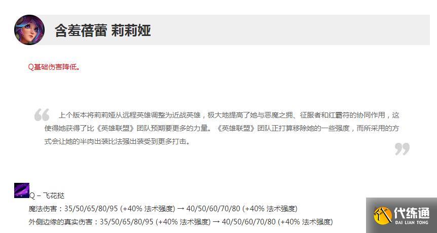 游戏《英雄联盟》国服于2022年12月8日更新了12.23版本,在该版本中设计师对莉莉娅进行了一定的削弱。一些玩家不知道12.23版本正式服莉莉娅削弱了什么,小编给大家收集LOL12.23版本正式服莉莉娅削弱一览,希望能帮到大家。