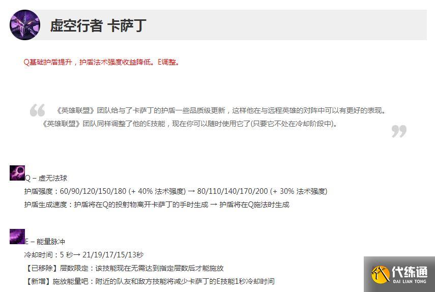 护盾生成速度:护盾将在Q的投射物离开卡萨丁的手时生成 → 护盾将在Q施法时生成