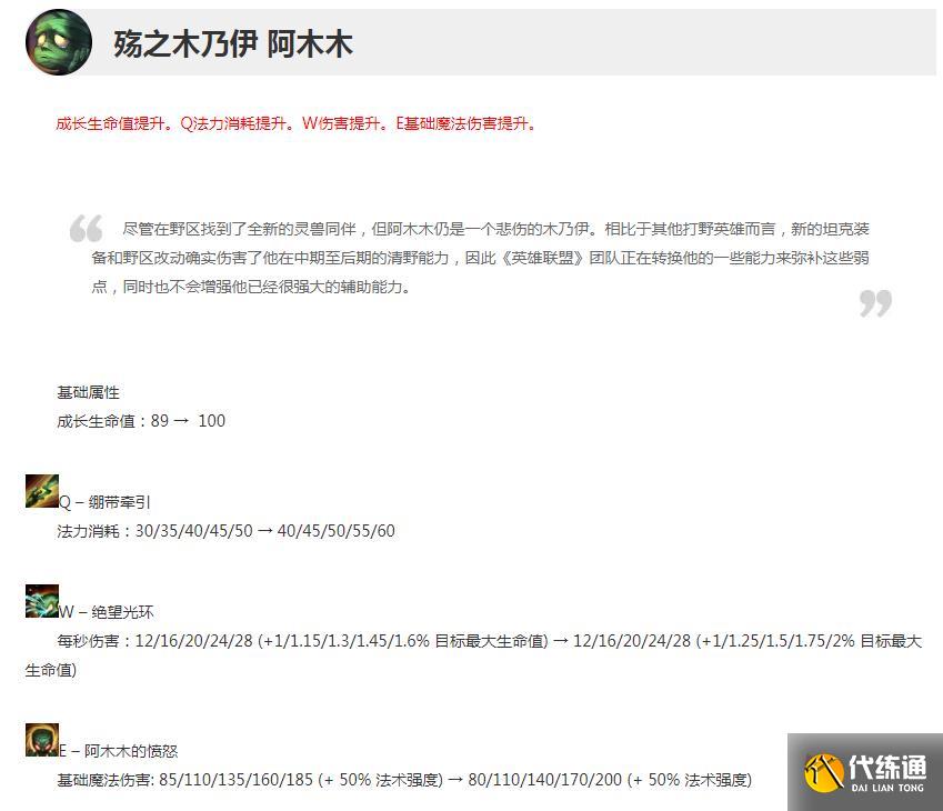 游戏《英雄联盟》国服于2022年12月8日更新了12.23版本,在该版本中设计师对阿木木进行了一定的加强。一些玩家不知道12.23版本正式服阿木木加强了什么,小编给大家收集LOL12.23版本正式服阿木木加强一览,希望能帮到大家。