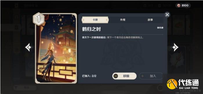 这套牌组中刻晴是后手快速上台挂元素,然后由琴扩散,琴本身不具备快速移动效果,如果一开始【鹤归之时】不在手上,出场时就要先拿莫娜挂元素