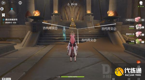 4. 进入挑战后,可以前往不同的方向激活古代符文,一共有3个。