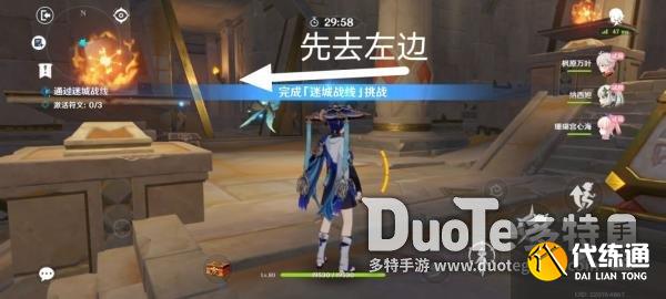 3、进入秘境先清理左边的「古代符文」,再按照第二条路线清理两个「古代符文」
