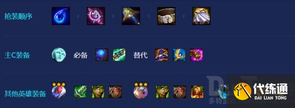 开局优先抢女神之泪或者无用法棒; 优先合成海克斯科技枪刃或者蓝霸符; 前期用斗士+小天才过渡,中期转换斗士+佐伊