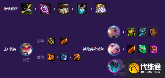 后排优先养VN的羊刀,无尽,巨杀,新赛季物理的技能也不能自带暴击,需要无尽才能开物理暴击,如果有珠光莲花可以再做个爆发,分裂弓,杀人剑或破防者都可以。